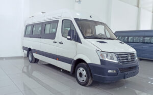 Passenger-Focused Comfort – Features 20 imitation leather seats, 12KW A/C, and beige interiors for a pleasant ride experience.