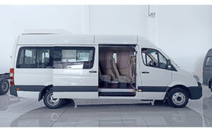 Passenger-Focused Comfort – Features 20 imitation leather seats, 12KW A/C, and beige interiors for a pleasant ride experience.
